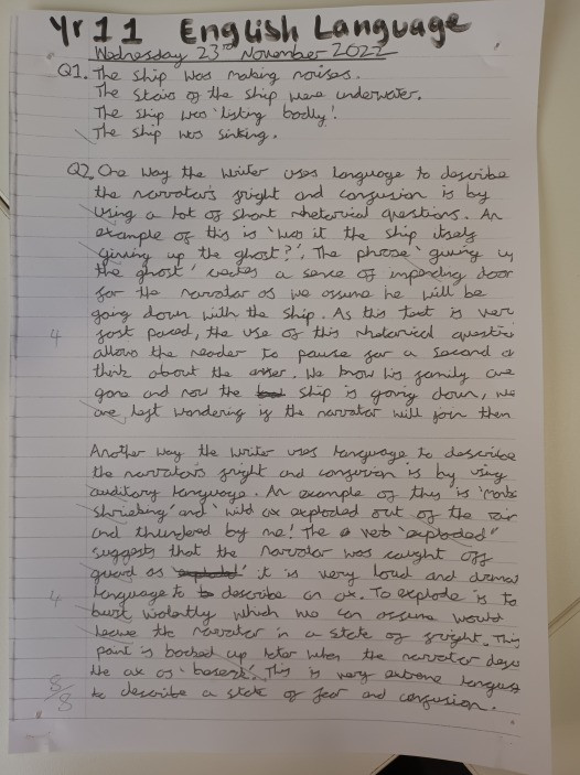 GCSE English Language, Paper 1 Year 11 Student